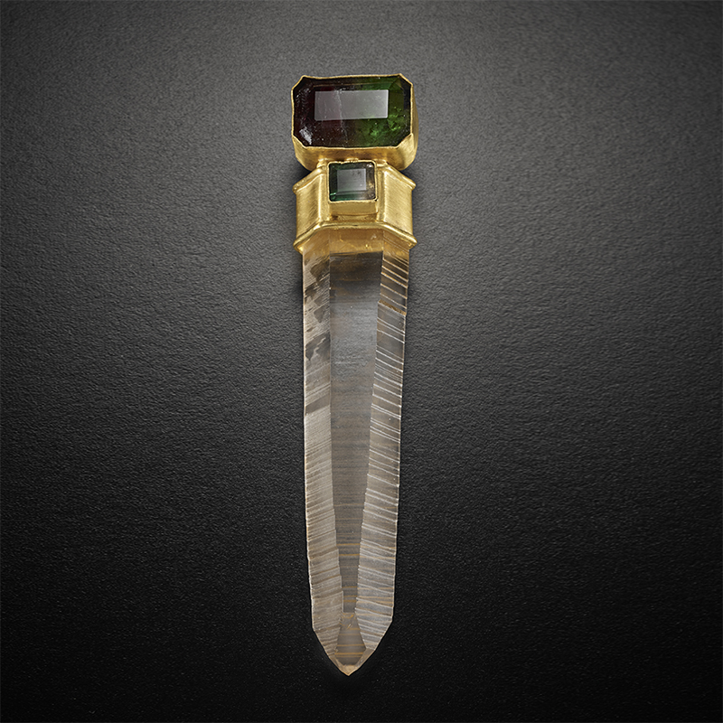 The two faceted bicolor tourmalines of this talisman create a powerful synergy with the Lemurian crystal point below. This talisman defines its Magik as the ability to create reality according to your own desires. Be sure to choose wisely for Magik knows its power and will assist you with your own.